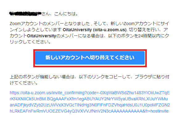 「メールアドレスの確認」をクリックし,届いたメールの内容にしたがってアカウントの切替を行います